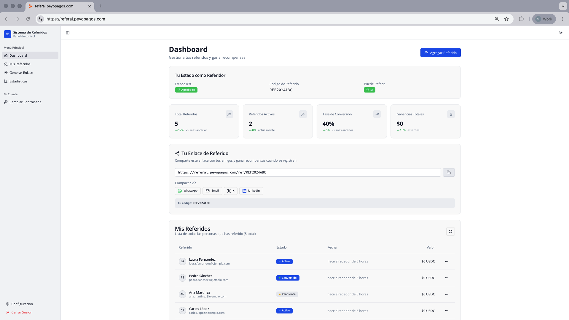 Comparte tu enlace de referido.