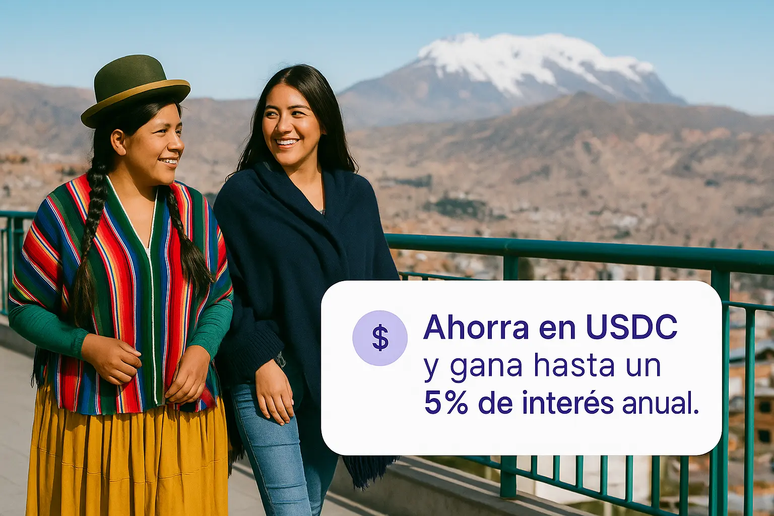 Mantén tu saldo en USDC y obtén hasta un 5 % de interés anual, con liquidación instantánea.