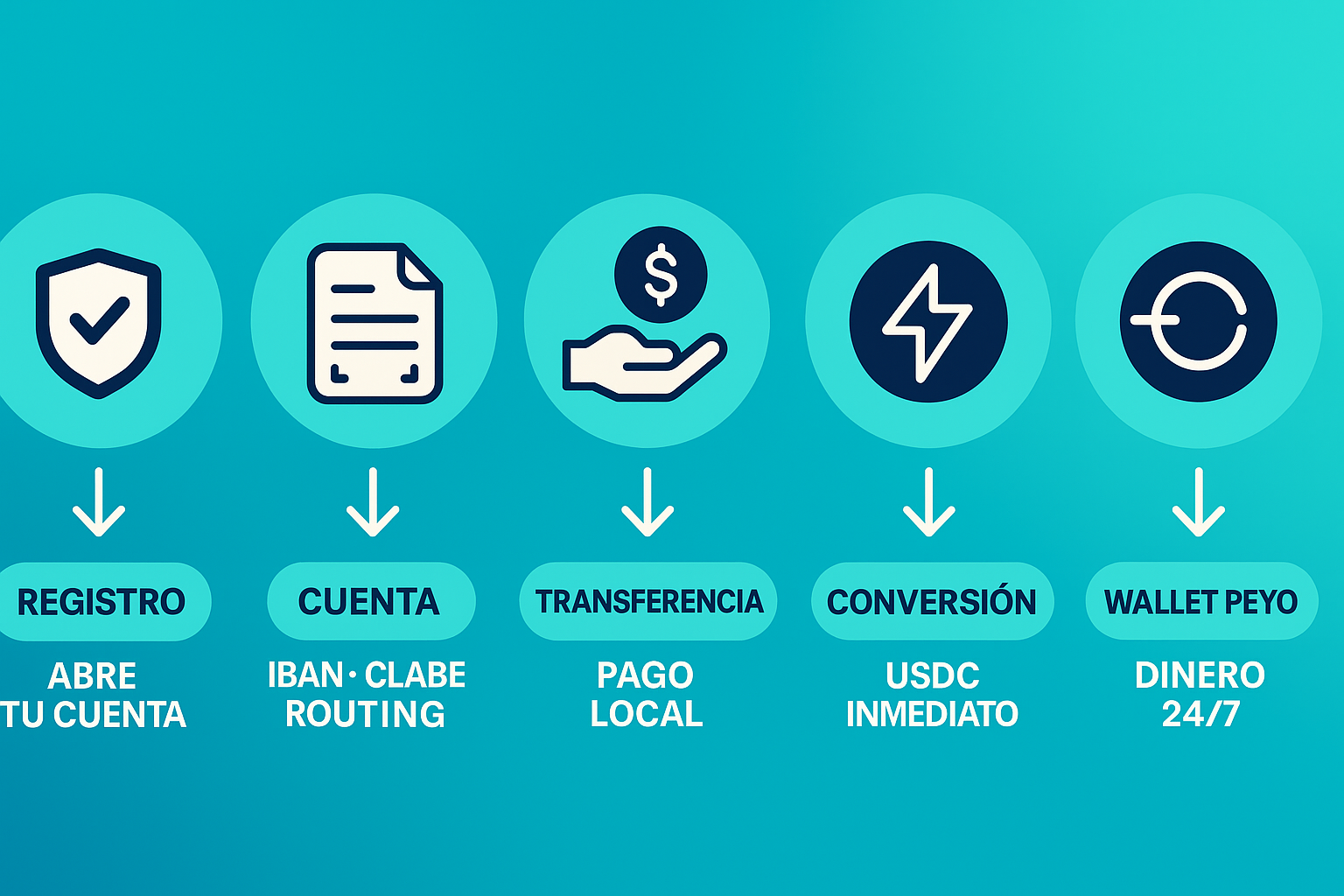 • Los USDC llegan directo a tu wallet Peyo, donde siempre estarán disponibles 24/7.